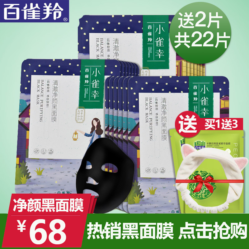 百雀羚面膜贴 小雀幸清澈净颜黑面膜清洁补水保湿控油官方旗舰店