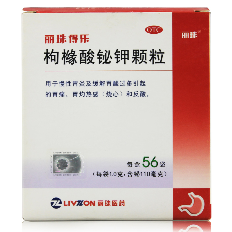 包邮】丽珠得乐枸橼酸铋钾颗粒56袋慢性胃炎胃酸过多反酸烧心胃痛