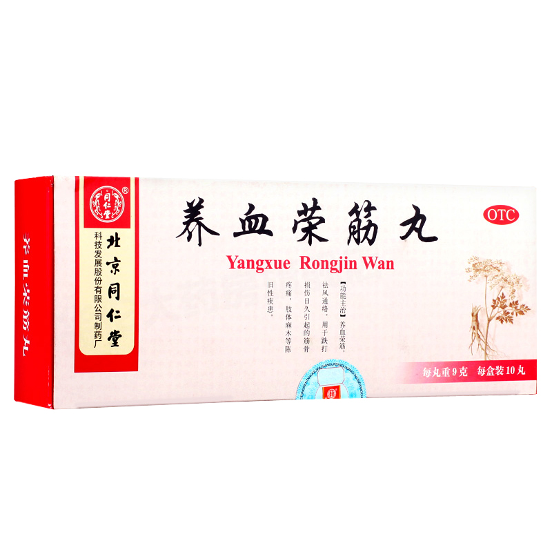 品牌:同仁堂 药品分类:非处方药 产品剂型:丸剂 套餐类型:标准装 有效期:60个月 用法:口服 适用人群:成人 类别:中药 生产企业:北京同仁堂科技发展股份有限公司制药厂 规格:9g*10丸/盒 疾病:风湿骨痛 症状:肢体麻木 使用剂量:一次1-2丸,一日2次。 批准文号:国药准字Z11020491 药品名称:养血荣筋丸 药品通用名:养血荣筋丸 查看全文