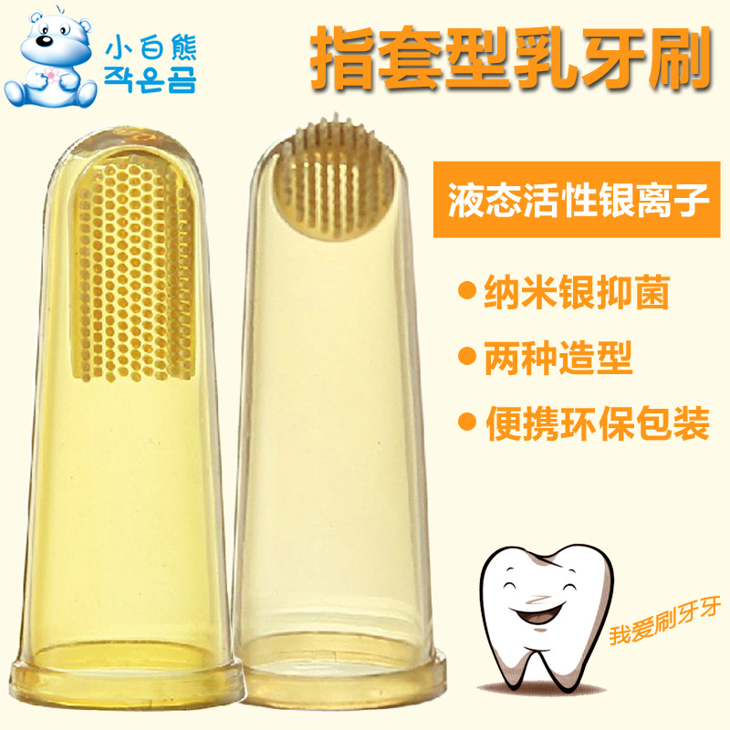 小白熊 宝宝纳米银指套型乳牙刷 婴儿抑菌护齿牙刷 09158