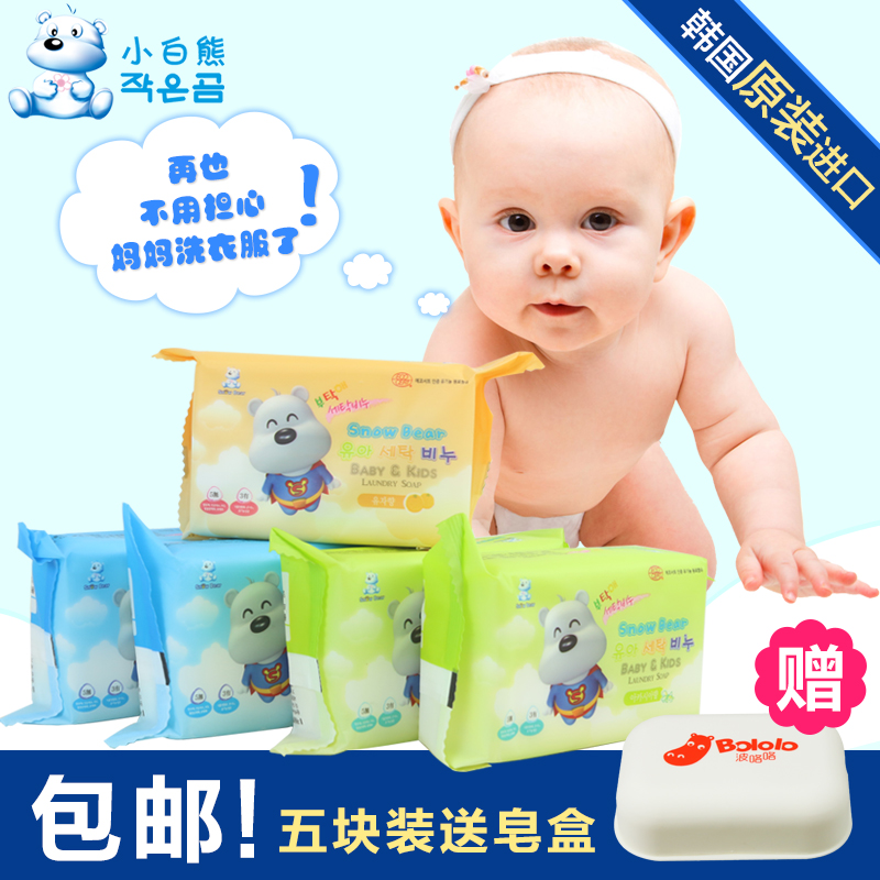 韩国原装小白熊婴儿洗衣皂 宝宝抗菌BB皂 婴儿皂尿布皂200g*5块装