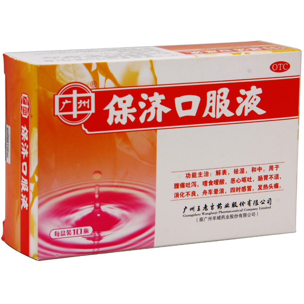 适用人群:不限 有效期:24个月 药品分类:非处方药 用法:口服 产品剂型:口服液 品牌:王老吉 类别:中药 规格:10ml*10支/盒 生产企业:广州王老吉药业股份有限公司 疾病:消化不良.脾胃不和 使用剂量:一次10~20毫升,一日3次 症状:食积不化.胃不适.呕吐.消化不良.肝胃不和 药品名称:保济口服液 药品商品名:王老吉 药品通用名:保济口服液 批准文号:国药准字Z44020582 查看全文