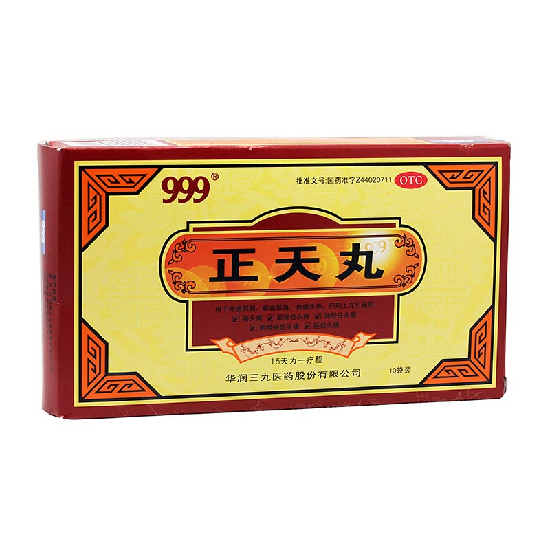 药品分类:非处方药 产品剂型:丸剂 用法:口服 适用人群:成人 类别:中药 规格:6g*10袋/盒 品牌:999 生产企业:华润三九医药股份有限公司 有效期:30个月 疾病:风寒感冒 使用剂量:一次1袋(6克),一日2-3次 症状:头痛.神经痛 药品名称:正天丸 药品商品名:999 药品通用名:正天丸 批准文号:国药准字Z44020711 查看全文