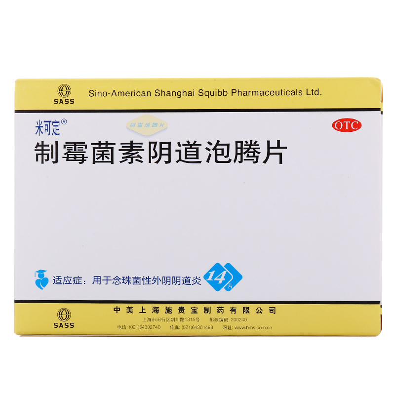 产品剂型:片剂 有效期:24个月 药品分类:非处方药 类别:化学药 适用人群:妇科 用法:阴道给药 疾病:阴道炎 症状:外阴瘙痒 生产企业:中美上海施贵宝制药有限公司 使用剂量:一次1片,一日1-2次,疗程一般为2周 品牌:米可定 药品名称:制霉菌素阴道泡腾片 药品通用名:制霉菌素阴道泡腾片 批准文号:国药准字H31022516 规格:14片/盒 查看全文