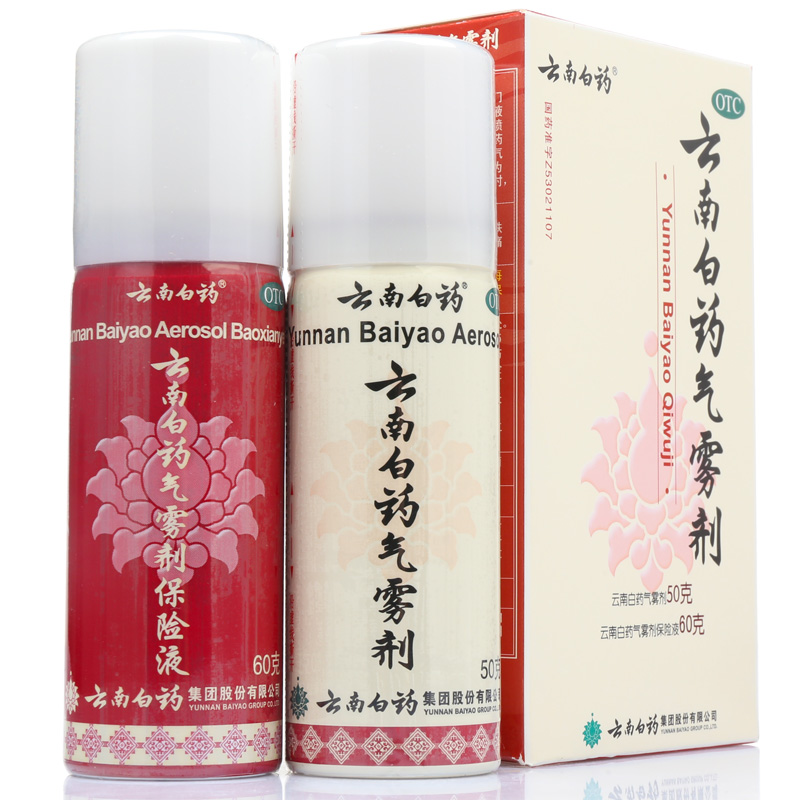 品牌:云南白药 适用人群:不限 用法:皮肤外用 药品分类:非处方药 有效期:36个月 产品剂型:外用液体剂 类别:中药 生产企业:云南白药集团股份有限公司 使用剂量:一日3-5次 批准文号:国药准字Z53021107 药品名称:云南白药气雾剂 药品通用名:云南白药气雾剂 疾病:关节疼痛.关节疼痛,肿胀.关节痛.关节肿胀、跌打损伤.扭伤.肌肉疼痛.肌肉痛.肌肉痛、扭伤.肌肉酸痛.风湿性关节炎 症状:关节痛.肌肉酸痛.跌打损伤.跌打损伤,扭伤,挫伤,关节肿痛,腰腿痛.风湿痛、关节痛、神经痛、挫伤.关节红肿.肌肉疼痛 规格:(50g*1瓶+60g*1瓶)/盒 查看全文