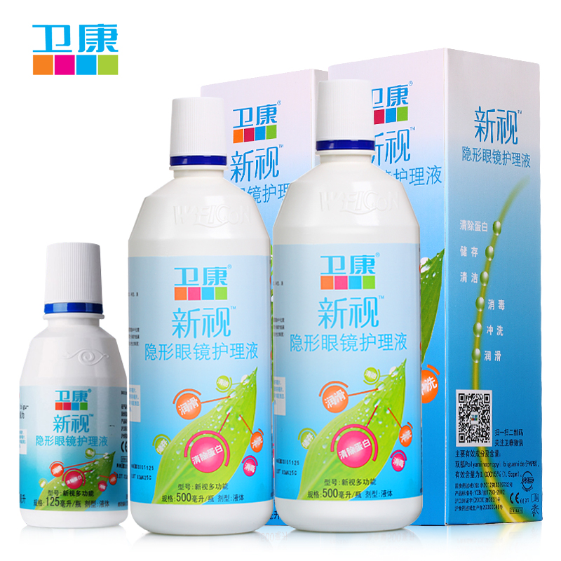 卫康护理液隐形眼镜近视新视多功能500ml*2+125ml美瞳药水除蛋白