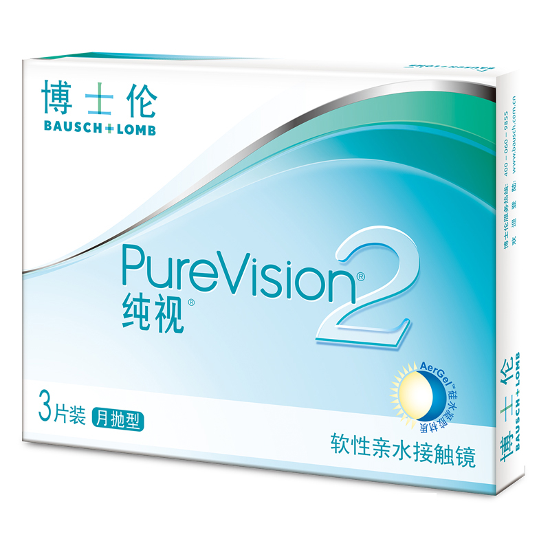 【4盒减199】博士伦纯视2代近视隐形眼镜月抛3片装水润舒适透气
