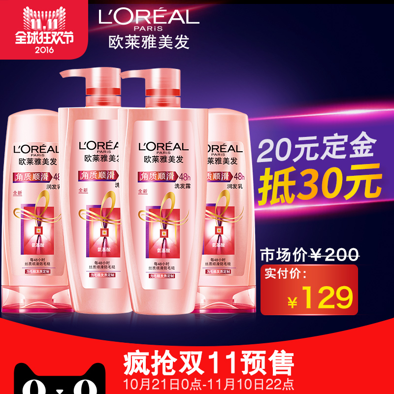 【双11预售】欧莱雅美发角质顺滑洗发水套装2.2L 改善干枯毛燥