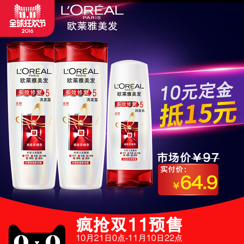【双11】欧莱雅美发多效修复洗发水润发乳套装 改善干枯毛燥分叉