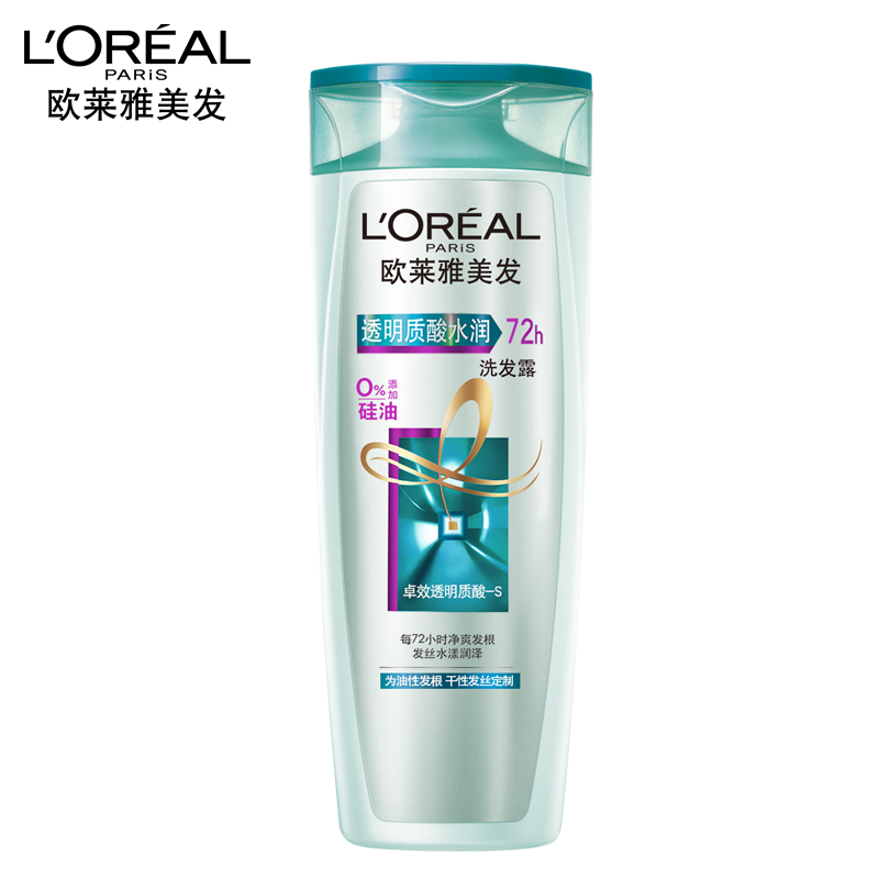 L'OREAL 欧莱雅美发透明质酸水润无硅油洗发水露200ml 控油正品