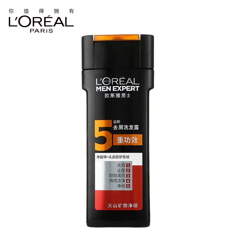 欧莱雅男士去屑洗发水露 火山矿物净彻 无硅油止痒 深层洁净200ml
