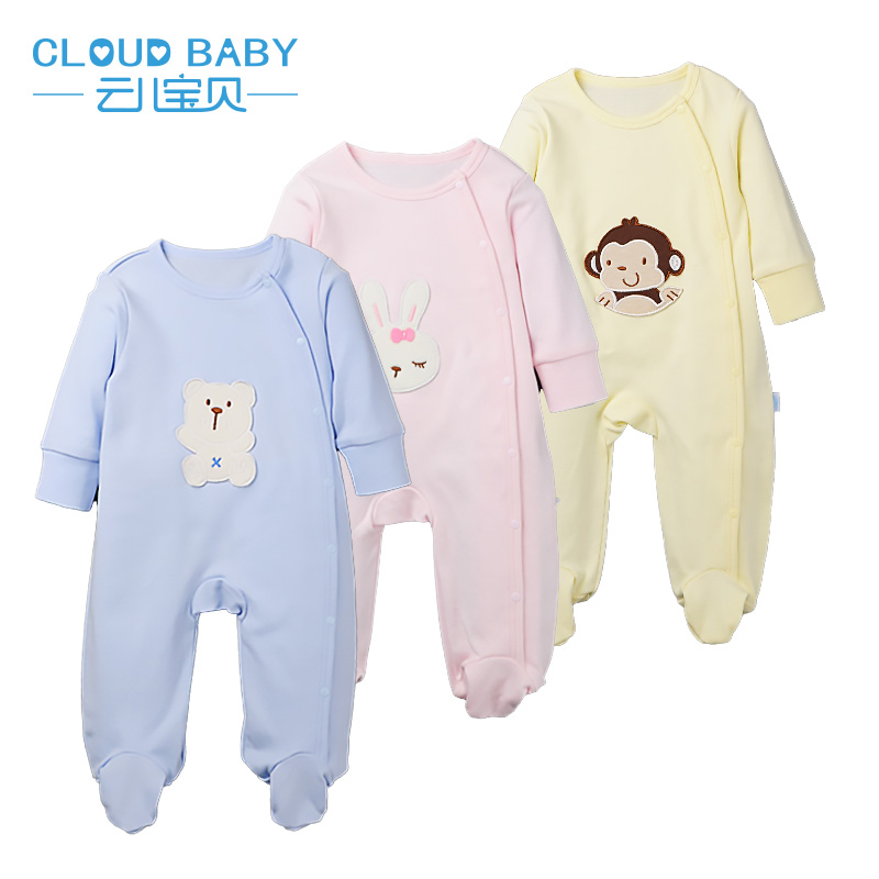 云儿宝贝 春款 宝宝连体衣 婴儿爬服纯棉新生儿斜开口连体哈衣