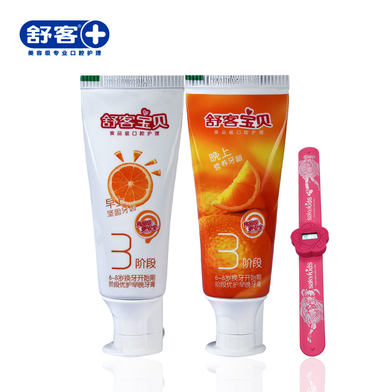 【2套减10元】舒客宝贝3阶段优护早晚儿童牙膏6-8岁鲜橙香型80克
