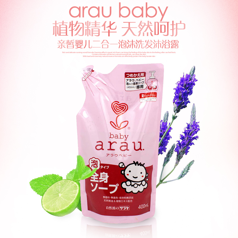 的热门产品日本原装亲皙arau婴儿泡泡沐浴露补充装宝宝清洁用品 400ml