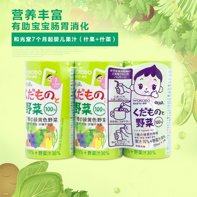 的热门产品【香港直邮】日本原装和光堂Wakodo7个月起婴儿果汁什果+什菜125m