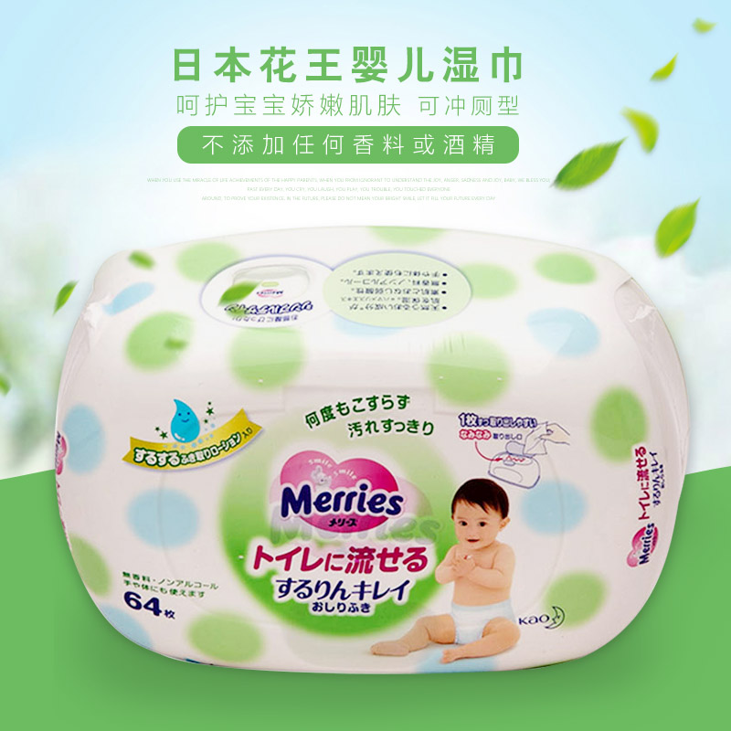 日本花王Merries妙而舒婴幼儿童滋润湿纸巾天然护肤64抽盒装带盖