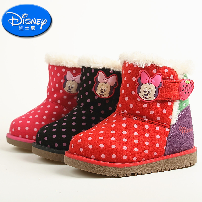 迪士尼雪地靴冬季新款女童米妮保暖加绒小童靴子儿童中筒靴CS0294