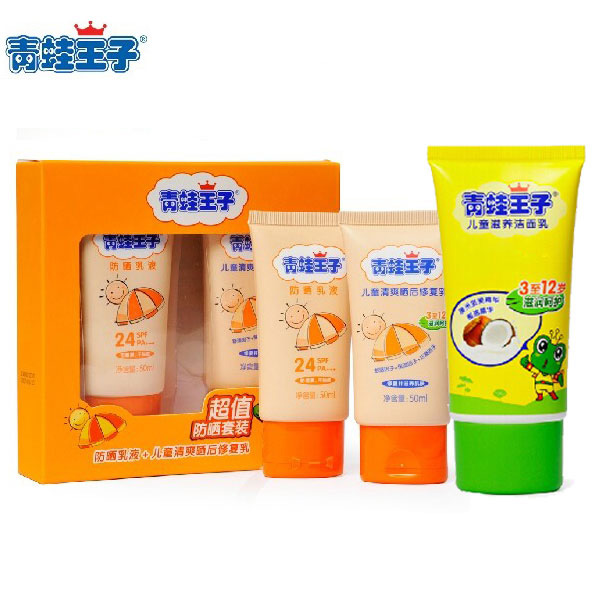 青蛙王子宝宝防晒霜夏季儿童防晒霜晒后修复乳套装儿童洗面奶组合