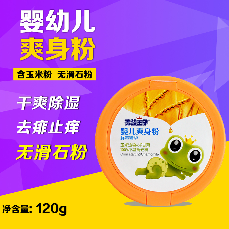 青蛙王子 宝宝婴儿爽身粉 儿童玉米爽身粉无滑石粉120g盒装带粉扑