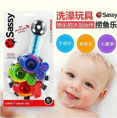 美国代购sassy网兜捞鱼乐宝宝婴儿儿童戏水洗澡认数玩具