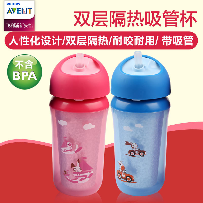 飞利浦新安怡AVENT双层隔热学饮杯SCF766/00吸管杯9安士260ml