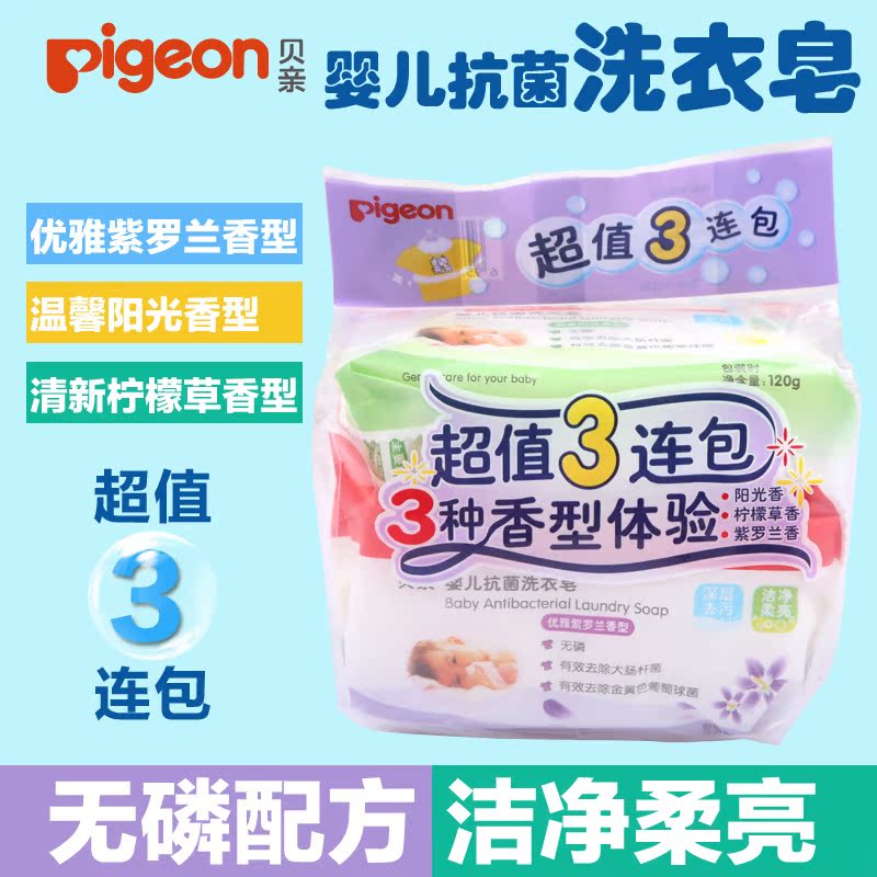 pigeon贝亲婴幼儿洗衣皂肥皂儿童宝宝bb香皂去污尿布皂无磷3包装