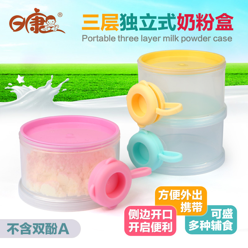 日康三层奶粉盒 便携储存婴儿宝宝罐格分装盒子大容量