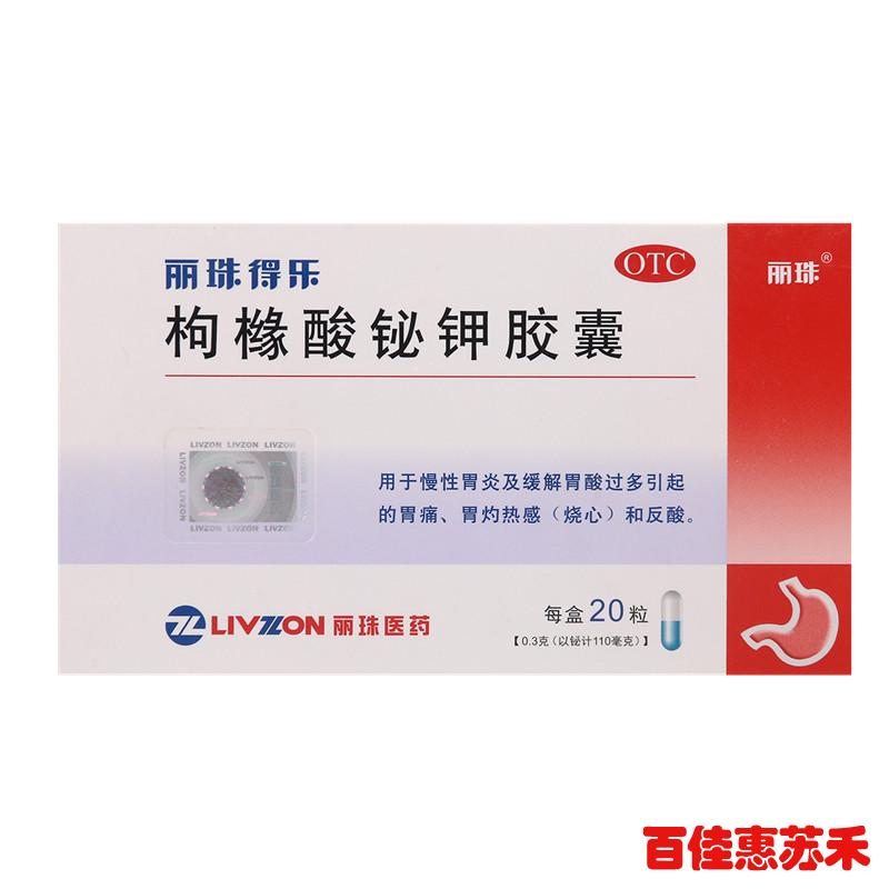 丽珠得乐 枸橼酸铋钾胶囊20粒 用于慢性胃炎胃痛灼热感反酸水包邮