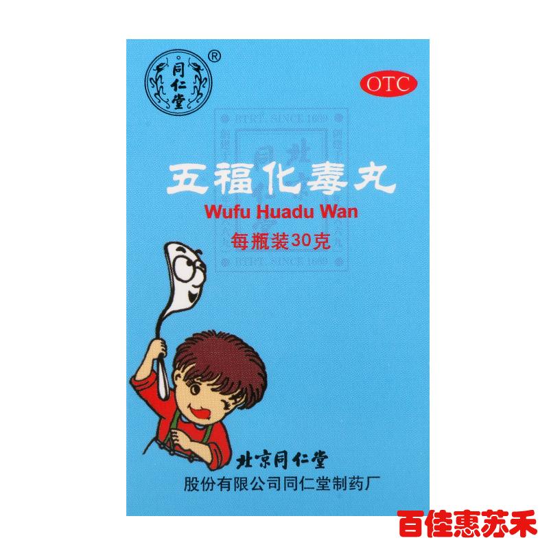 同仁堂五福化毒丸30g清热解毒凉血消肿用于咽喉肿痛口舌生疮包邮
