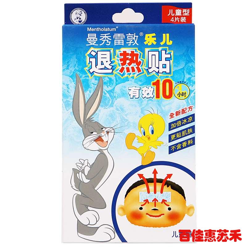 曼秀雷敦乐儿退热贴儿童4片贴降温退热幼儿宝宝退烧贴包邮