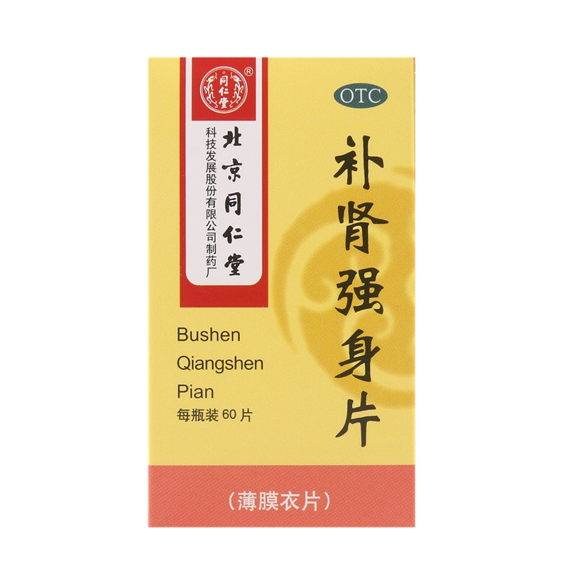 产品剂型:片剂 品牌:同仁堂 药品分类:非处方药 套餐类型:标准装 用法:口服 适用人群:成人 有效期:36个月 类别:中药 生产企业:北京同仁堂科技发展股份有限公司制药厂 疾病:肾亏虚 症状:头晕耳鸣.腰膝酸软 药品名称:补肾强身片 药品通用名:补肾强身片 使用剂量:一日3次,一次5片 批准文号:国药准字Z11021167 规格:0.28g*60片*1瓶/盒 查看全文