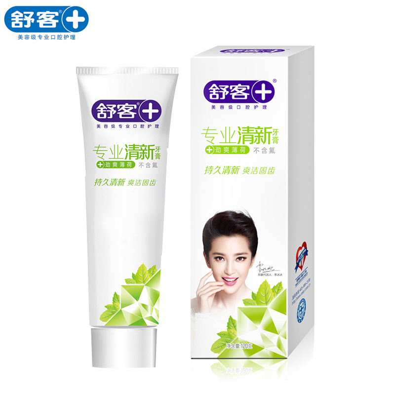舒客舒克专业清新牙膏劲爽薄荷味120g美白牙齿去口气异味