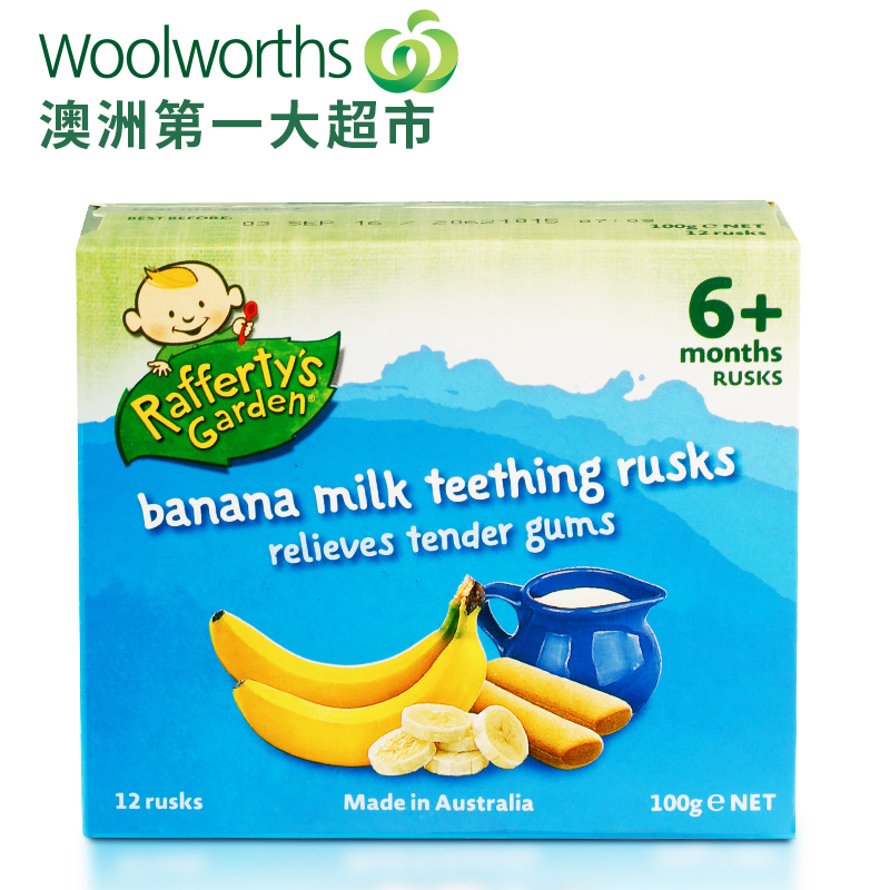 澳洲原装进口 Rafftertys香蕉牛奶面包干100克磨牙棒宝宝婴儿饼干