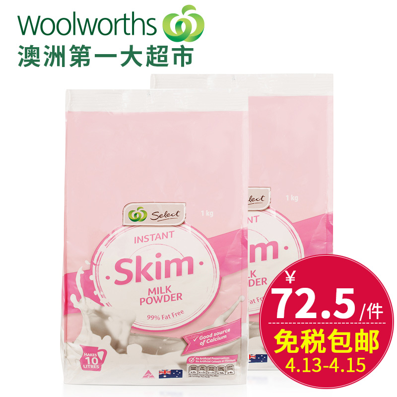 澳洲原装进口 Select脱脂奶粉 1kg*2袋 进口奶粉成人学生高钙速溶