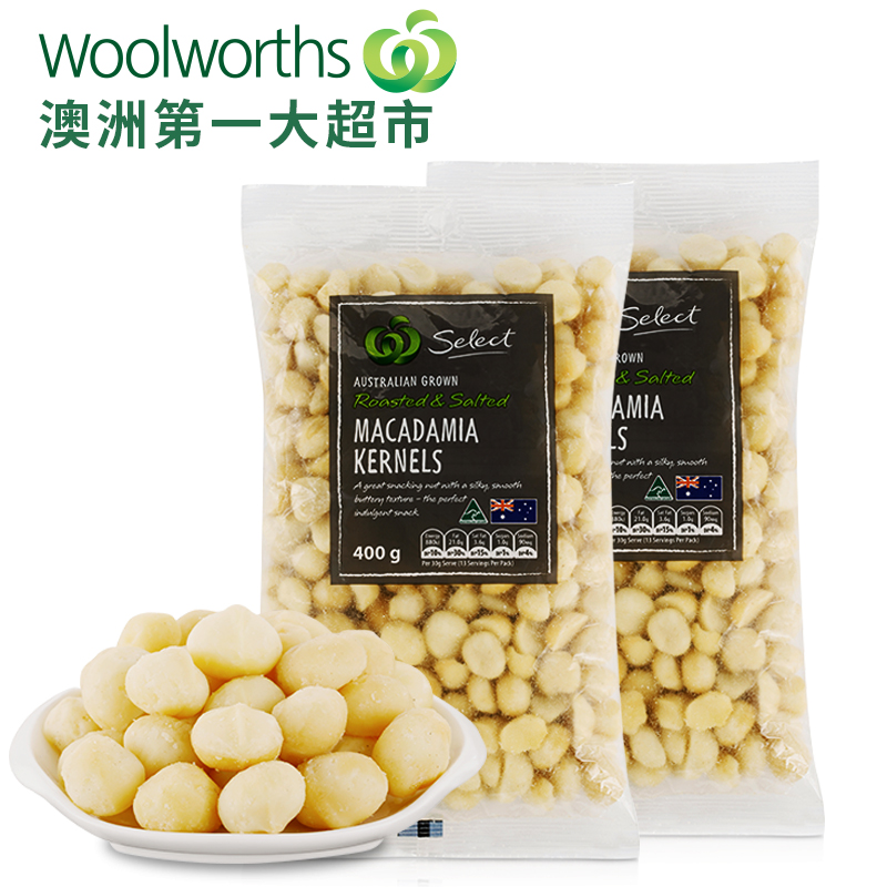Woolworths澳洲直邮 夏威夷果400g*2袋 热烤坚果炒货干果休闲零食